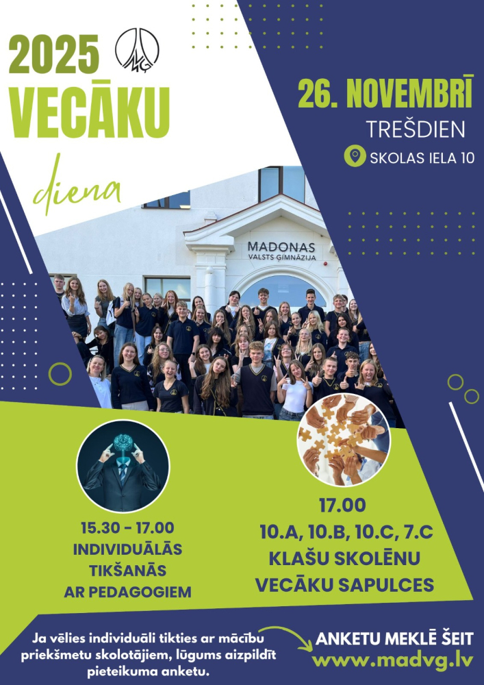 no 15:30 līdz 17:00 Individuālas tikšanās ar mācību priekšmetu skolotājiem (mēs priecāsimies, ja vecāki nāks uz tikšanos kopā ar bērniem)