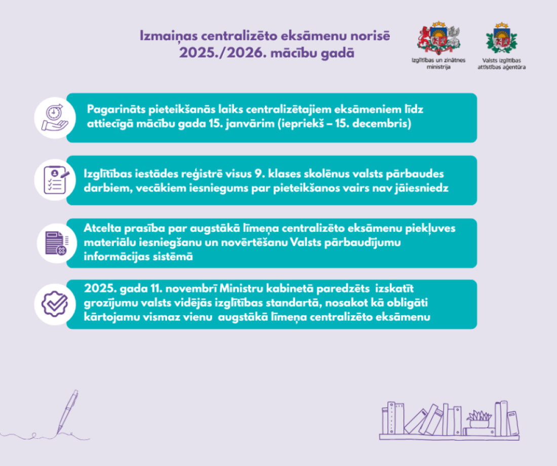 Valsts pārbaudes darbu grafiks 2025./2026. mācību gadam: